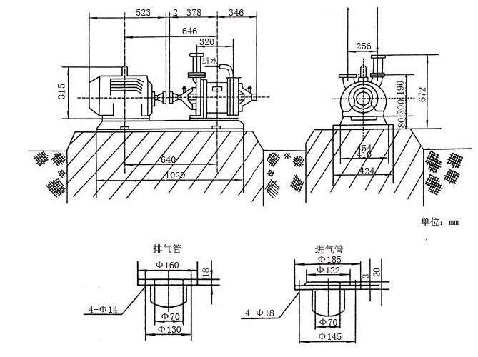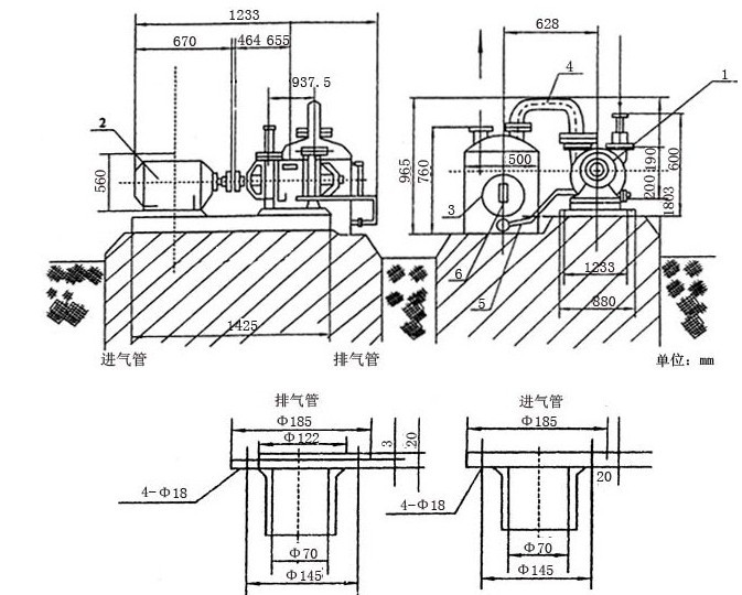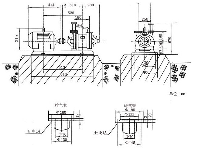 3、SZ型水環(huán)式真空泵與氣水分離器間的管路安裝: