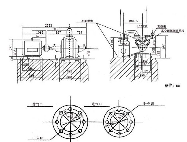 6、用球形閥(7)調(diào)整由氣水分離器向SZ水環(huán)式真空泵水的水量,以便在所要求的技術(shù)條件下運轉(zhuǎn),使功率消耗最小。